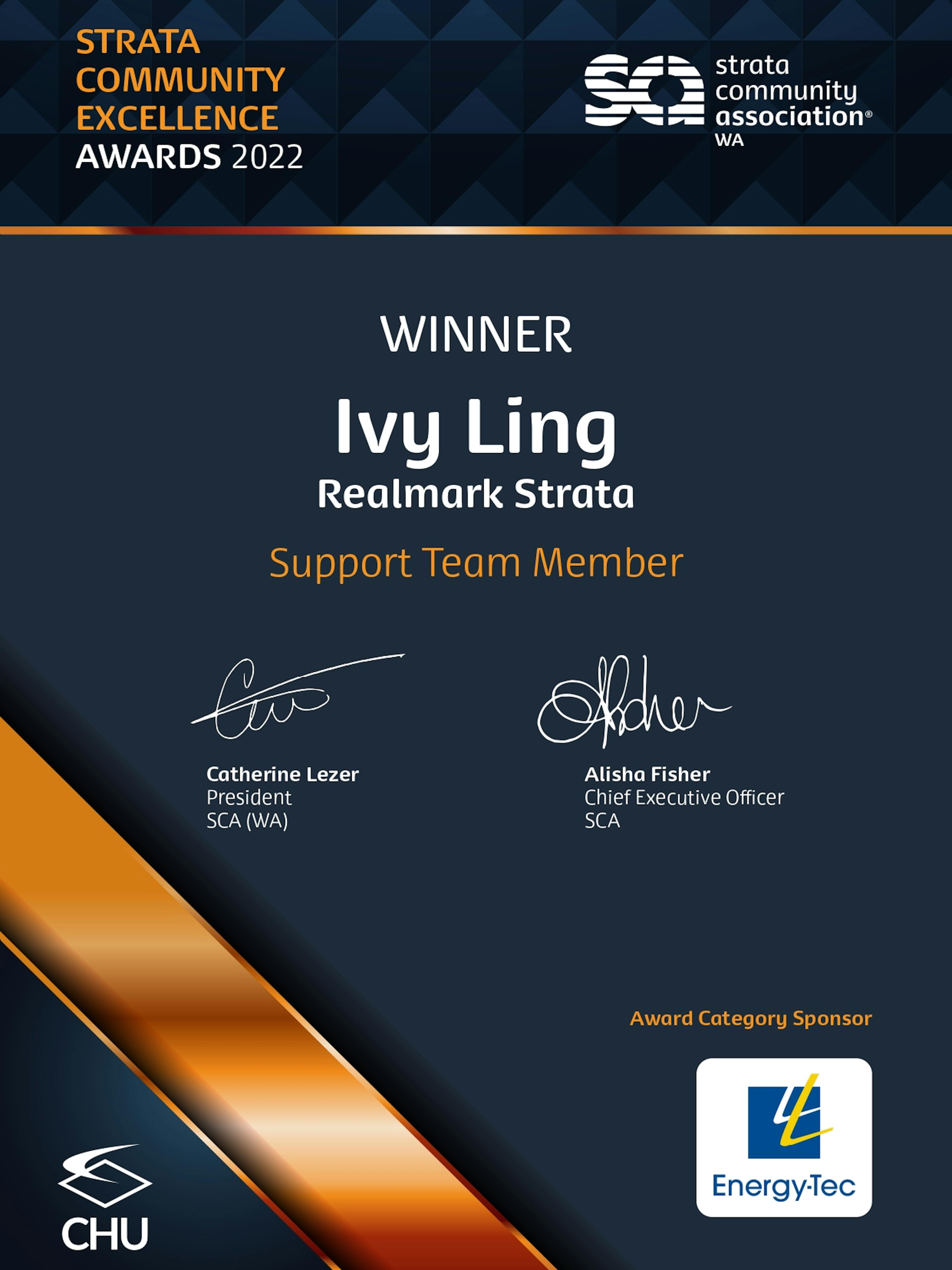 Ivy’s excellence has been formally acknowledged through industry awards, including the 2022 Strata Community Association (WA) Support Team Member Award, where she was also a finalist in the national Strata Community Association Australasia Awards. Ivy combines technical proficiency with strong communication and stakeholder management skills, consistently recognized for her professionalism, reliability, and results‑oriented approach. Clients and colleagues alike commend her for her diligence, responsiveness, and unwavering commitment to high standards, with testimonials praising her ability to reconcile complex accounts, recover lost investments, and deliver results under pressure.